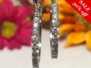 14 K.T. WHITE GOLD LADIES DIAMOND HOOP EARRINGS