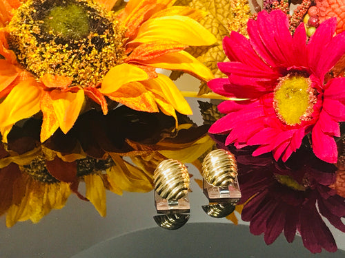 14 K.T. YELLOW GOLD LADIES SCALLOPED TWIST DESIGN EARRINGS
