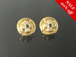 18 K.T.YELLOW GOLD LADIES CUBIC ZIRCON ROUND BUTTOM STYLE EARRINGS