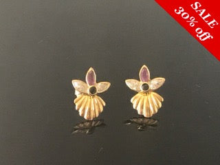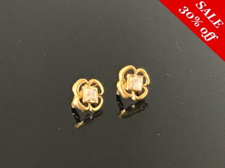 18 K.T. YELLOW GOLD LADIES CUBIC ZIRCON EARRINGS CLOVER SHAPED
