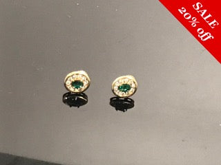14 K.T. YELLOW GOLD LADIES EMERALD & DIAMOND EARRINGS