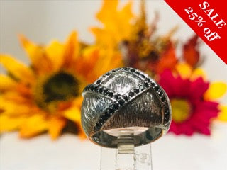 14 K.T. LADIES WHITE GOLD DOME RING SATIN FINISH W/ ROUND BLACK DIAMONDS