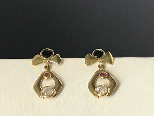 18 K.T. YELLOW GOLD LADIES COLORED CUBIC ZIRCON EARRINGS
