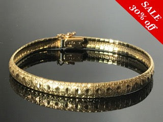 14 K.T. LADIES YELLOW GOLD OMEGA DESIGN DIAMOND CUT BRACELET 7"