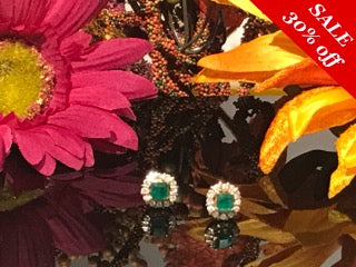 14 K.T. YELLOW GOLD LADIES DIAMOND & EMERALD EARRINGS